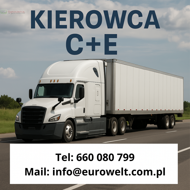 - Prawo jazdy kat. C+E z kodem 95 i kartą kierowcy